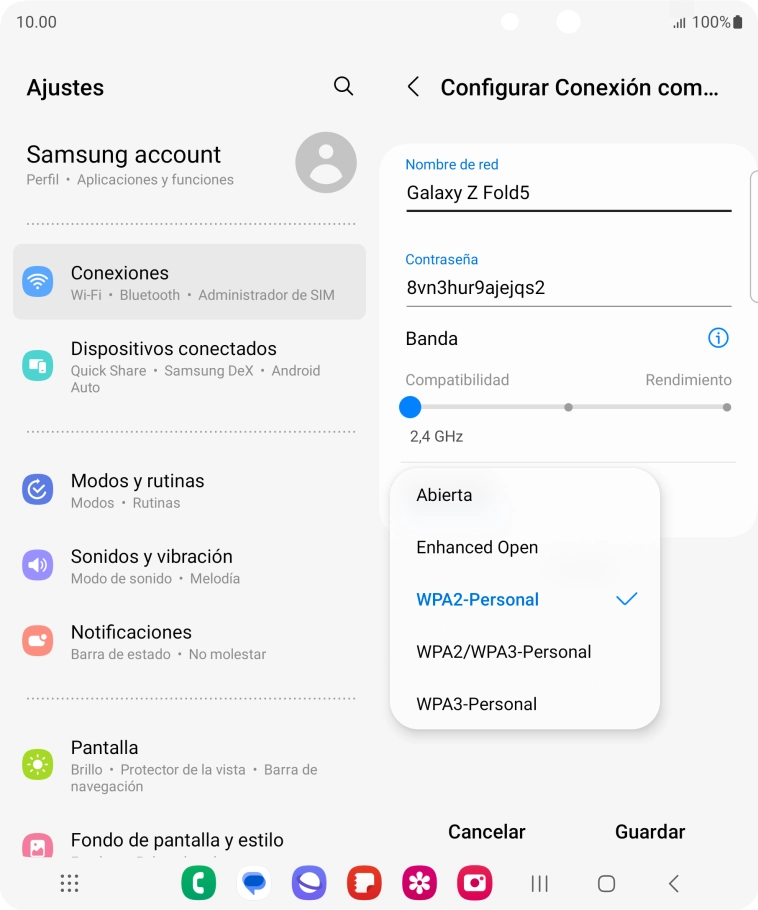 Pulsa WPA3-Personal para proteger la conexión wifi con una contraseña.