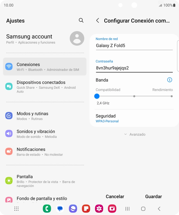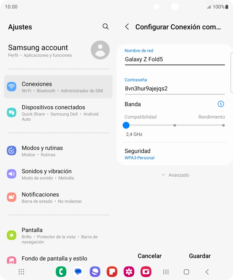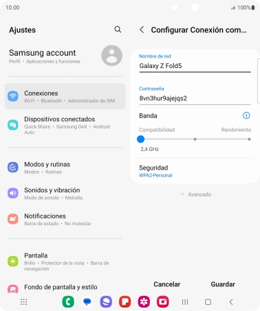 Utiliza el Samsung Galaxy Z Fold5 Android 13 como conexión wifi