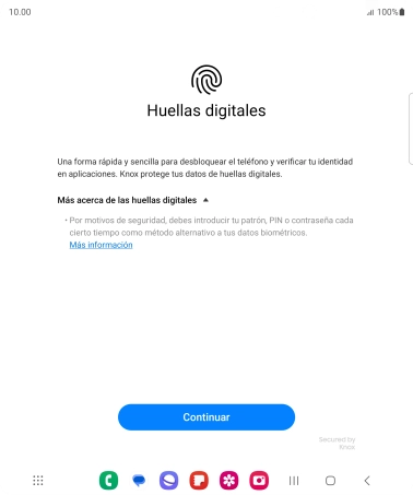 Sigue las indicaciones de la pantalla para crear una huella digital como código de seguridad.