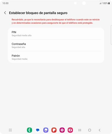 Pulsa el código de seguridad deseado y sigue las indicaciones de la pantalla para crear un código de seguridad del teléfono adicional.