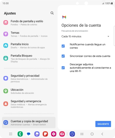 Pulsa en el campo junto a "Sincronizar correo de esta cuenta" para activar la función.