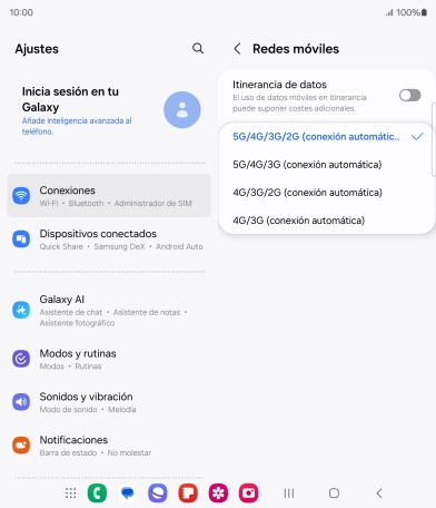 Selecciona el tipo de red en el Samsung Galaxy Z Fold6 Android 14