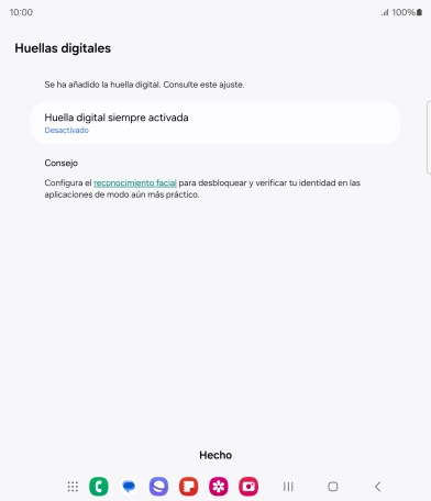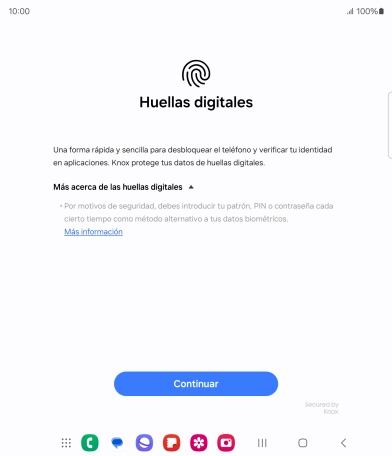 Sigue las indicaciones de la pantalla para crear una huella digital como código de seguridad.