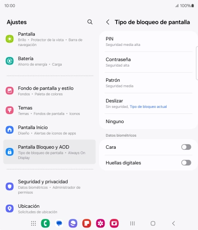 Pulsa Tipo de bloqueo de pantalla e introduce el código de seguridad extra que has creado anteriormente.