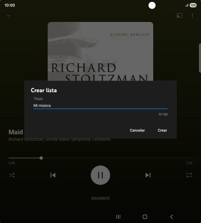 Introduce el nombre deseado de la lista de reproducción y pulsa Crear.