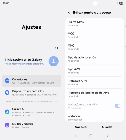 Pulsa en el campo junto a la conexión de datos para activarla.