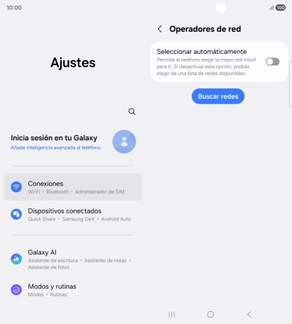Pulsa el indicador junto a "Seleccionar automáticamente" para desactivar la función y espera mientras el teléfono está buscando redes.