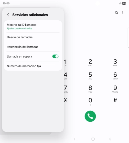 Pulsa el indicador junto a "Llamada en espera" para activar o desactivar la función.
