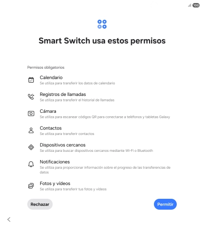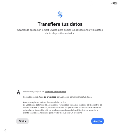 Pulsa el ajuste deseado y sigue las instrucciones de la pantalla para transferir el contenido del otro teléfono.