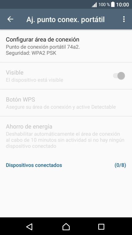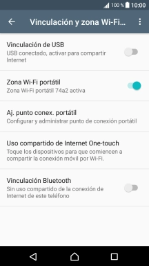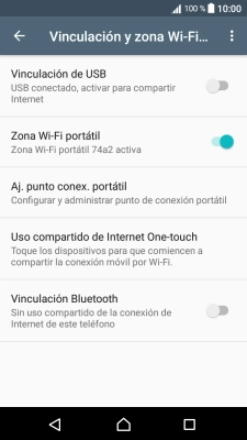 Pulsa el indicador junto a "Zona Wi-Fi portátil" para activar la función.