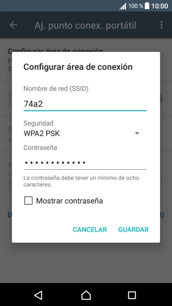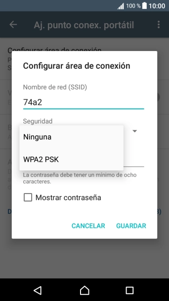 Pulsa WPA2 PSK para proteger la conexión wifi con una contraseña.
