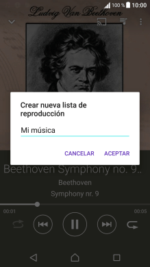 Introduce el nombre deseado de la lista de reproducción y pulsa ACEPTAR.