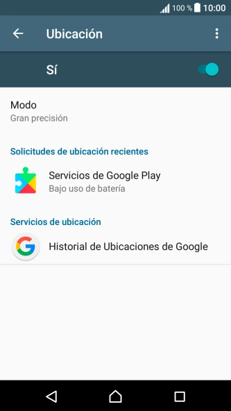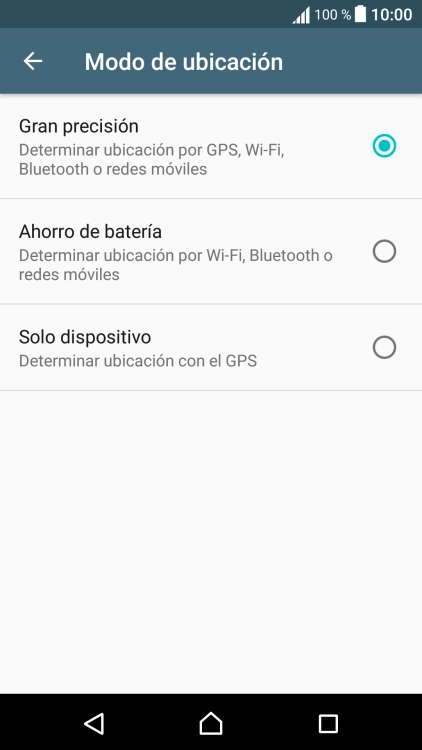 Si seleccionas Solo dispositivo, el teléfono podrá encontrar tu posición exacta con ayuda de los satélites GPS, pero le llevará más tiempo ya que no tiene acceso a informaciones complementarias de la red móvil o una red wifi cercana.