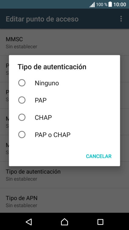 11 Selecciona el tipo de APN