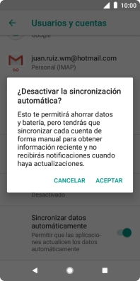 Pulsa el indicador junto a "Sincronizar datos automáticamente" para activar o desactivar la función.