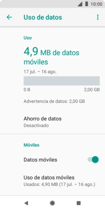 Pulsa el indicador junto a "Datos móviles" para activar o desactivar la función.