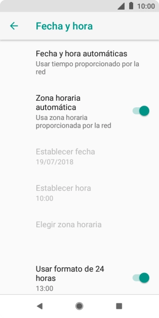 Pulsa Usar tiempo proporcionado por la red para activar la función.