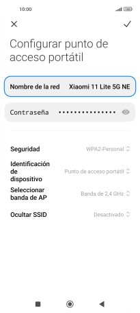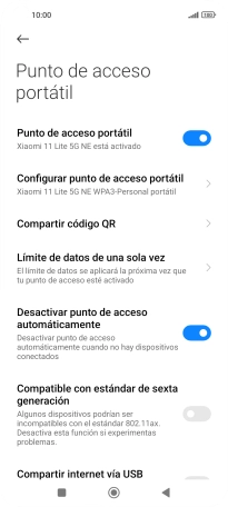 Pulsa el indicador junto a "Punto de acceso portátil" para activar la función.
