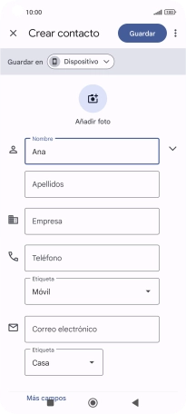 Sigue las indicaciones de la pantalla para añadir más información como, por ejemplo, la dirección de correo electrónico y el timbre de llamada personal.