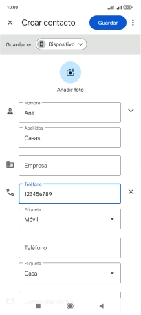 Sigue las indicaciones de la pantalla para añadir más información como, por ejemplo, la dirección de correo electrónico y el timbre de llamada personal.