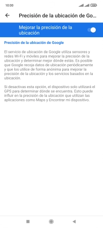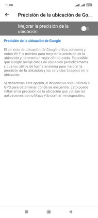 Si pulsas el indicador junto a "Mejorar la precisión de la ubicación" para desactivar la función, el teléfono podrá encontrar tu posición exacta con ayuda de los satélites GPS, pero le llevará más tiempo ya que no tiene acceso a informaciones complementarias de la red móvil o una red wifi cercana.
