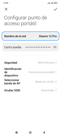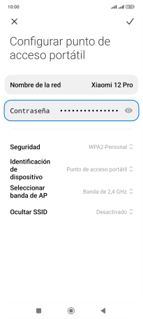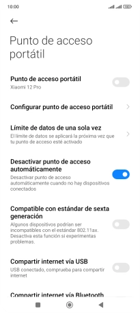 Pulsa el indicador junto a "Punto de acceso portátil" para activar la función.