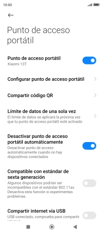 Pulsa el indicador junto a "Punto de acceso portátil" para activar la función.