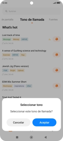 Cuando encuentres un timbre de llamada de tu gusto, pulsa el icono de timbre de llamada junto al tono correspondiente.