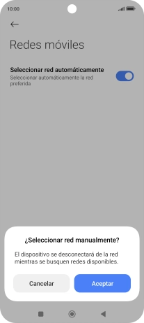 Pulsa el indicador junto a "Seleccionar red automáticamente" para desactivar la función.