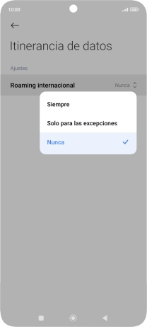 Pulsa la lista desplegable junto a "Roaming internacional".