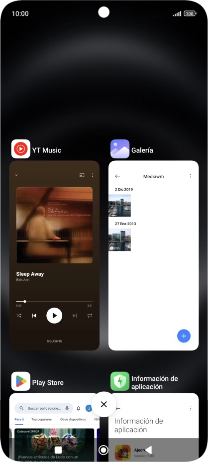 Si deseas cerrar todas las aplicaciones en ejecución, pulsa el icono de cerrar todas las aplicaciones.
