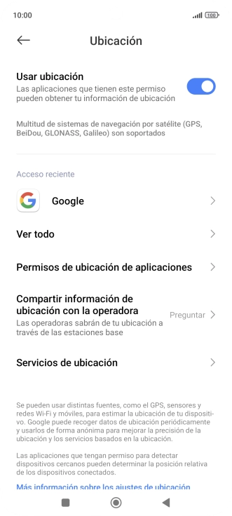 3 Activa o desactiva el uso de la posición GPS para las aplicaciones