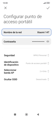 Pulsa el indicador junto a "Punto de acceso portátil" para activar la función.