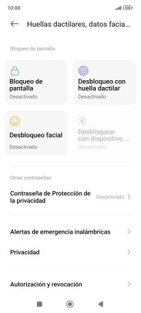 Pulsa Huellas dactilares, datos faciales y bloqueo de pantalla.