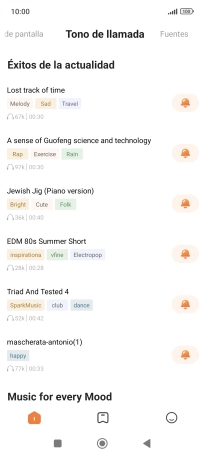 Cuando encuentres un timbre de llamada de tu gusto, pulsa el icono de timbre de llamada junto al tono correspondiente.