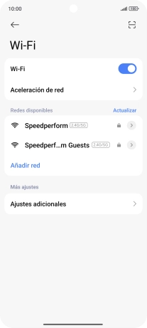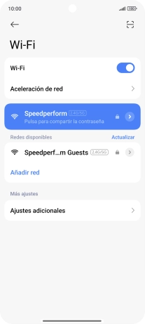 Si la red wifi está protegida con una contraseña, aparecerá un icono de candado junto al nombre de la red wifi. El administrador o el proveedor de red te puede proporcionar la contraseña.