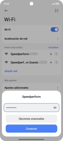 Introduce la contraseña de la red wifi y pulsa Conectar.