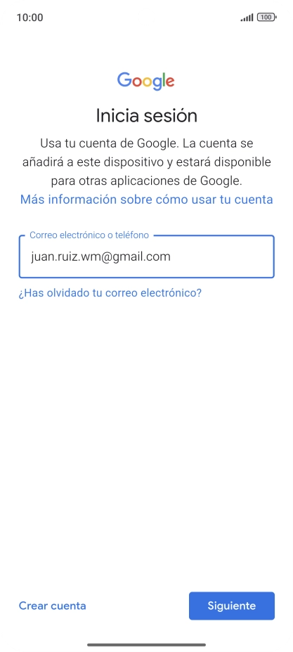 Pulsa Correo electrónico o teléfono e introduce el nombre de usuario de tu cuenta de Google.