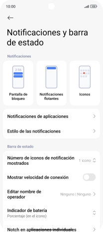 Pulsa Notificaciones y barra de estado.