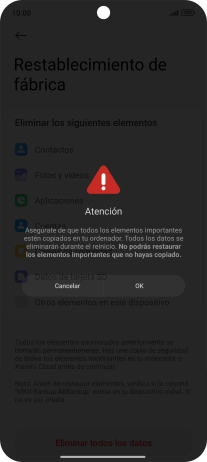 Pulsa OK. Espera unos instantes mientras el teléfono restablece la configuración predeterminada. Sigue las indicaciones de la pantalla para configurar el teléfono y dejarlo listo para su uso.