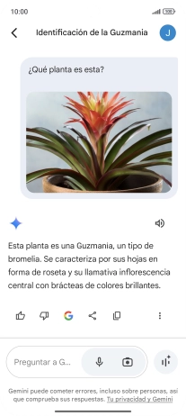 Sigue las indicaciones de la pantalla para escribir o decir en alto la pregunta deseada. Puedes adjuntar fotografías o documentos y hacer preguntas acerca de ellos.