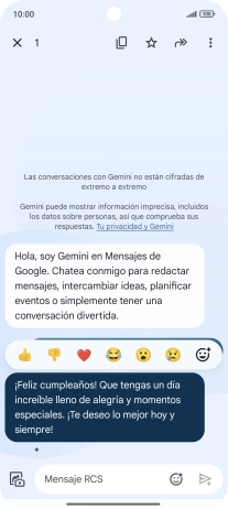 La propuesta de texto de Gemini se visualiza ahora en la pantalla.