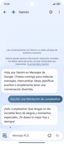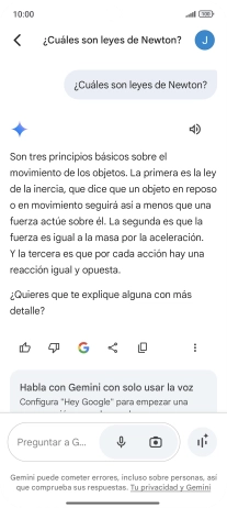 Sigue las indicaciones de la pantalla para escribir o decir en alto más preguntas y continuar la conversación.
