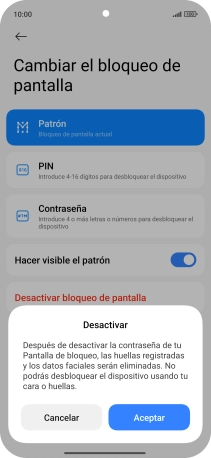 Pulsa Desactivar bloqueo de pantalla e introduce el código de seguridad extra que has creado anteriormente.