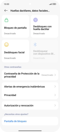 Pulsa Huellas dactilares, datos faciales y bloqueo de pantalla.