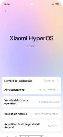 Pulsa Xiaomi HyperOS. Si hay una versión de software nueva disponible, aparecerá ahora en la pantalla. Sigue las indicaciones de la pantalla para actualizar el software del teléfono.