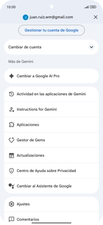 Desliza el dedo hacia la derecha por la pantalla para volver a Gemini.