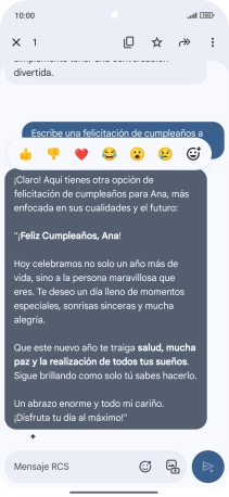 Sigue las indicaciones de la pantalla para escribir o decir en alto más preguntas y continuar la conversación.