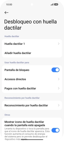 1. Busca "Desbloqueo con huella dactilar"