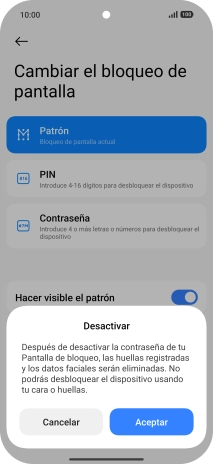 Pulsa Desactivar bloqueo de pantalla e introduce el código de seguridad extra que has creado anteriormente.